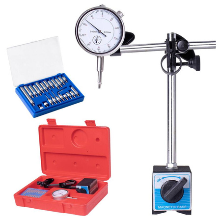 Czujnik zegarowy średnicówka SK1938S 0-10mm 0,01 +Statyw magnetyczny +22 końcówki i walizka